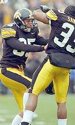 Kaeding is Iowa’s all-time scoring leader with 335 points and third in the Big Ten for kicking points at 345. He’s made 62-of-75 career field goal attempts and 159-of-162 points after touchdown.