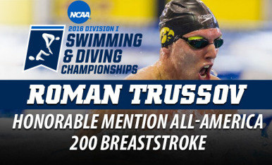 Trussov earned his first honorable mention All-America accolade in the 100 breaststroke Friday. He is the first Hawkeye since 2013 (Grant Betulius, Andrew Marciniak, Byron Butler, and Jordan Huff) to earn multiple All-America distinctions.